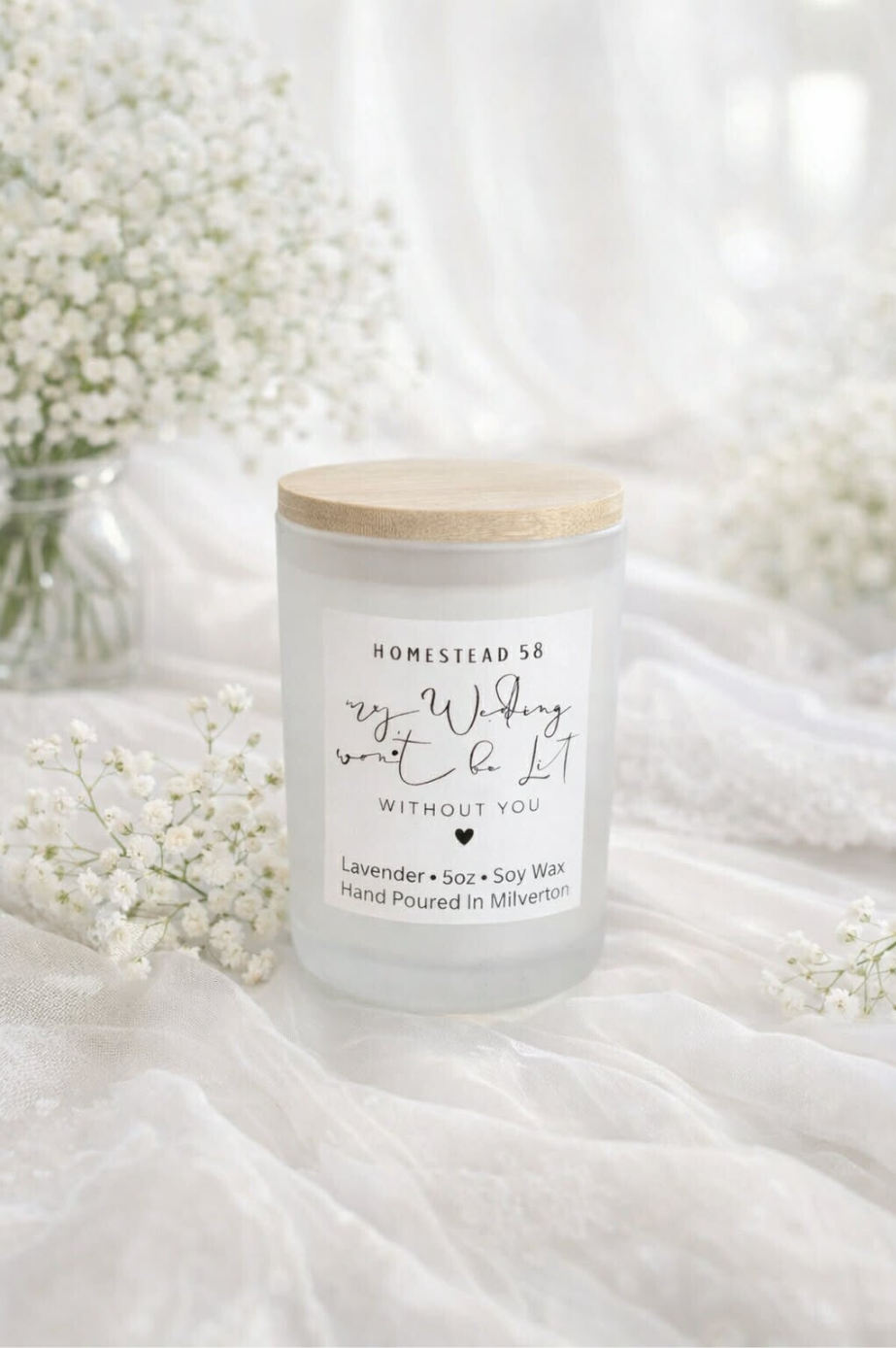 Our custom candles are ideal for a variety of special events and celebrations. Whether you're a bride looking for unique wedding favours, a business seeking personalized gifts for clients, or simply want to show someone you care, Homestead 58 has you covered.